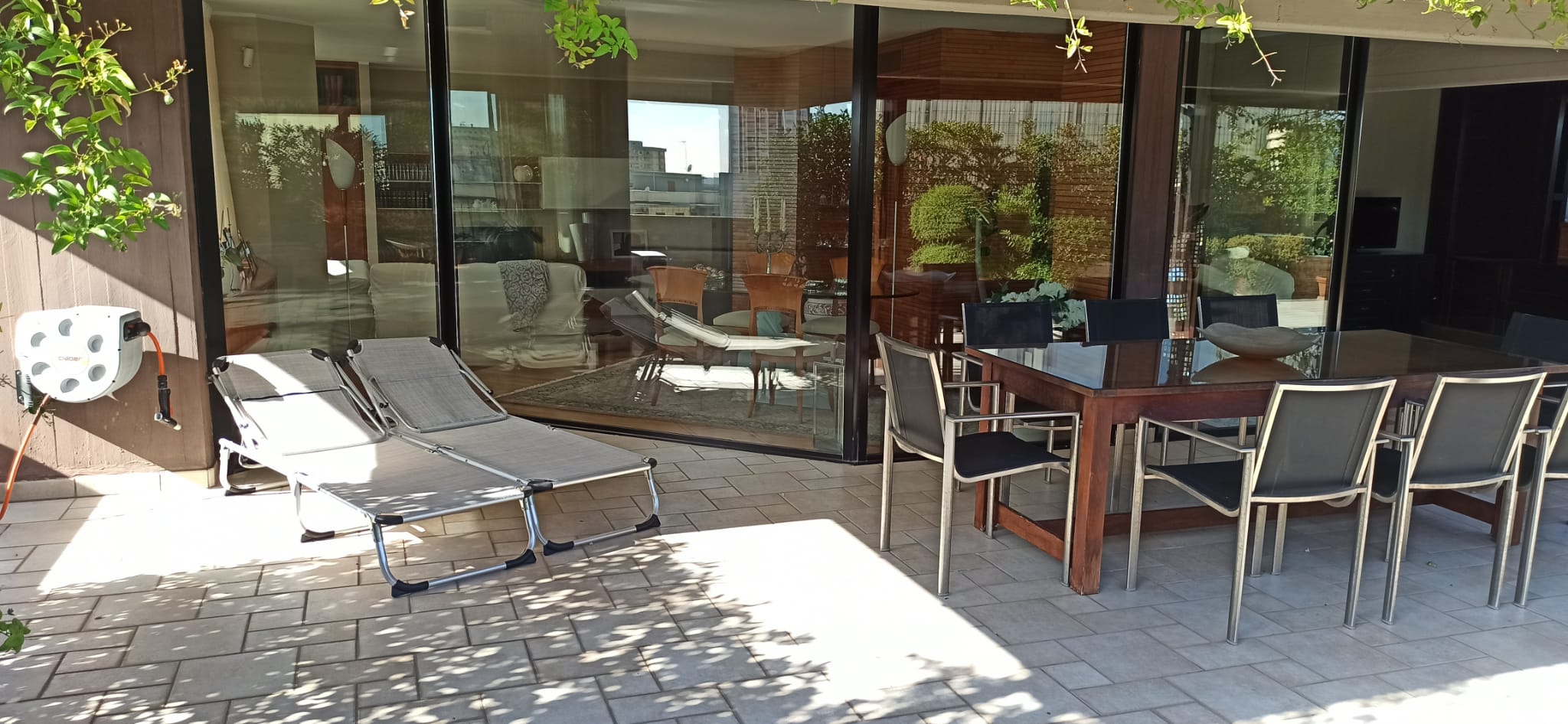 La vera gemma di questa proprietà è la veranda panoramica, che si affaccia su un terrazzo curato, arredato e attrezzato per cene all'aperto. Immagina di trascorrere serate indimenticabili con amici e familiari, grazie al barbecue e all'angolo cottura esterno. La privacy è garantita da diverse piante ornamentali che circondano l'area.